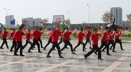 開幕式上由新眾城集團(tuán)30名青年突擊隊(duì)員表演的軍體拳,動(dòng)作整齊劃一、剛勁有力,將開幕式推向高潮。