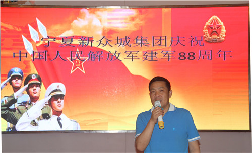 當(dāng)晚,集團(tuán)公司舉辦了慶祝建軍88周年聯(lián)誼活動(dòng),集團(tuán)雷光新董事長在聯(lián)誼活動(dòng)上發(fā)表重要講話,他表示:軍隊(duì)是一個(gè)大熔爐,是一所大學(xué)校,培養(yǎng)了一代又一代的人才,是部隊(duì)讓我們從五湖四海為了同一個(gè)夢(mèng)想走到了一起,讓我們團(tuán)結(jié)起來,為寧夏新眾城集團(tuán)的明天而努力奮斗!