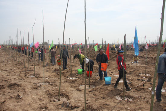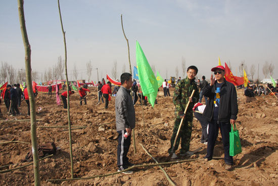 4月6日,陽光明媚,春風(fēng)拂面,銀川市覽山公園北園博園義務(wù)植樹基地一片繁忙景象。當日,寧夏回族自治區(qū)2012年全民義務(wù)植樹活動啟動。自治區(qū)、銀川市綠委辦組織駐銀中央、自治區(qū)、銀川市行政機關(guān)、企事業(yè)單位的干部職工、學(xué)校師生和部隊官兵等共5000余人參加了義務(wù)植樹活動。